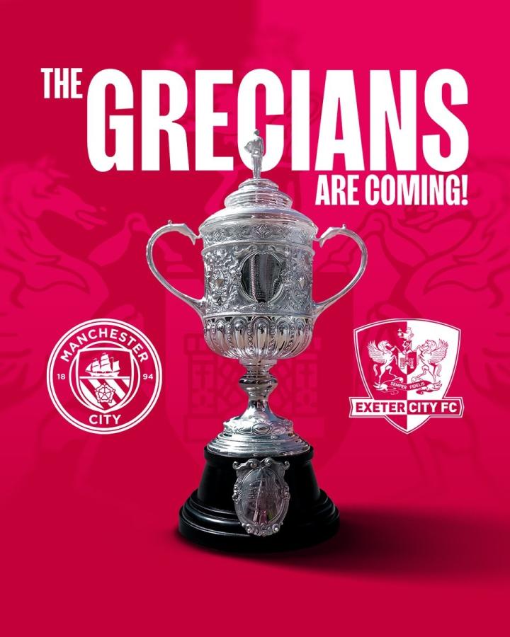 這將是曼城與埃克塞特城歷史上的首次交手。
